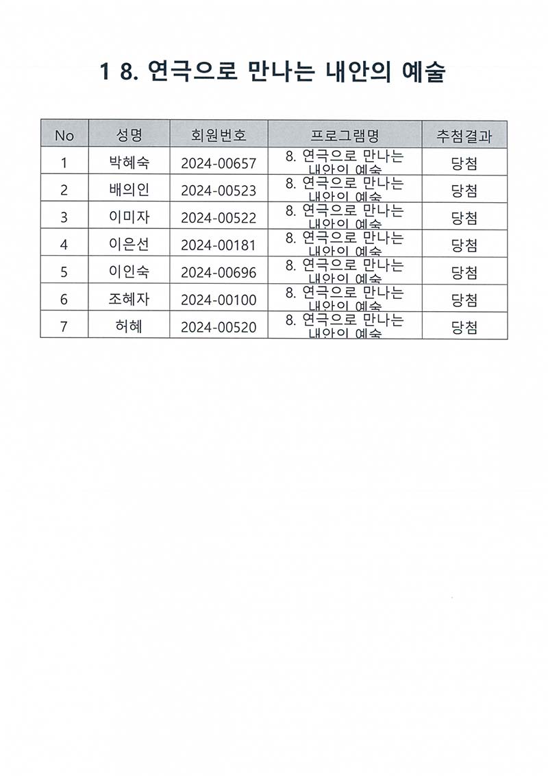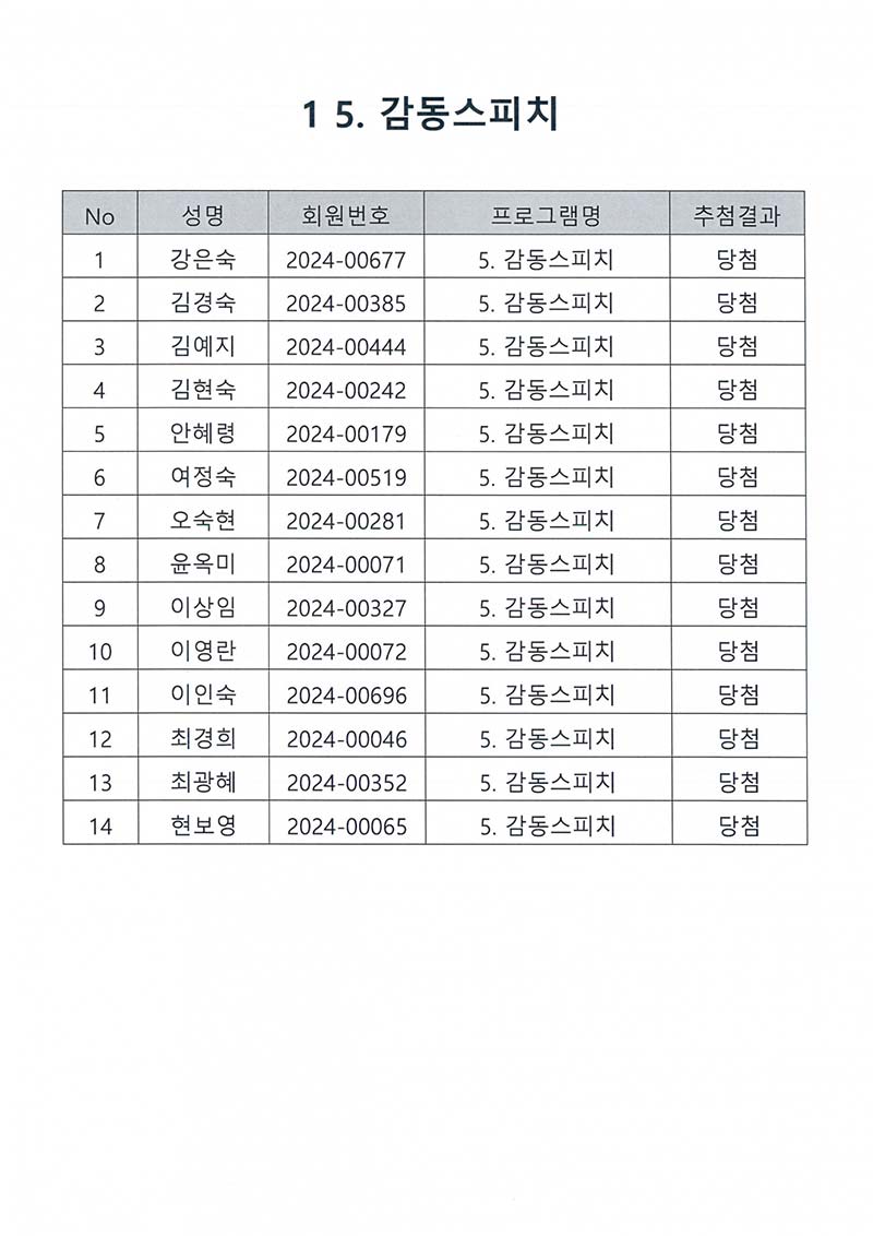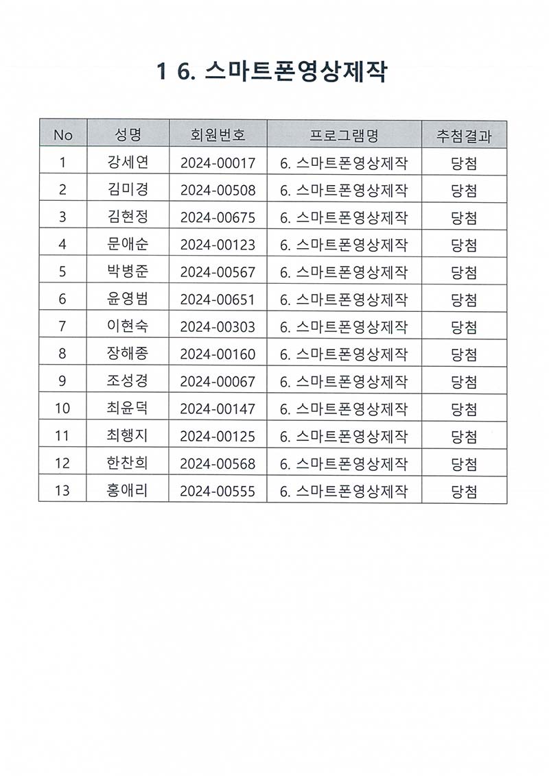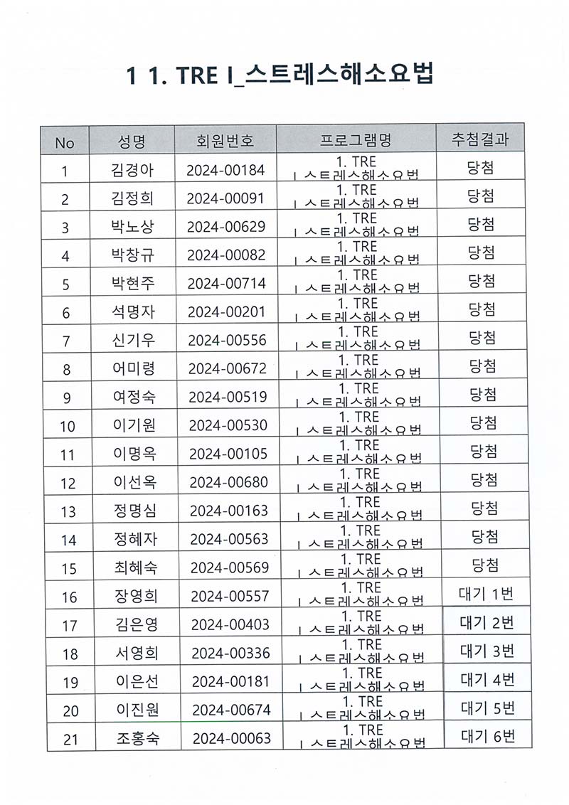 TRE I/II, 요가, 필라테스, 감동스피치, 영상제작, 스마트폰기초, 연극 프로그램 추첨결과 페이지 정보 작성자 최고관리자 작성일2024-12-20 11:56 조회1,691회 댓글0건 최고관리자 관련링크 이전글 다음글 목록 본문 TRE I/II, 요가, 필라테스, 감동스피치, 영상제작, 스마트폰기초, 연극 프로그램 추첨결과 댓글목록 등록된 댓글이 없습니다. 이전글 다음글 목록