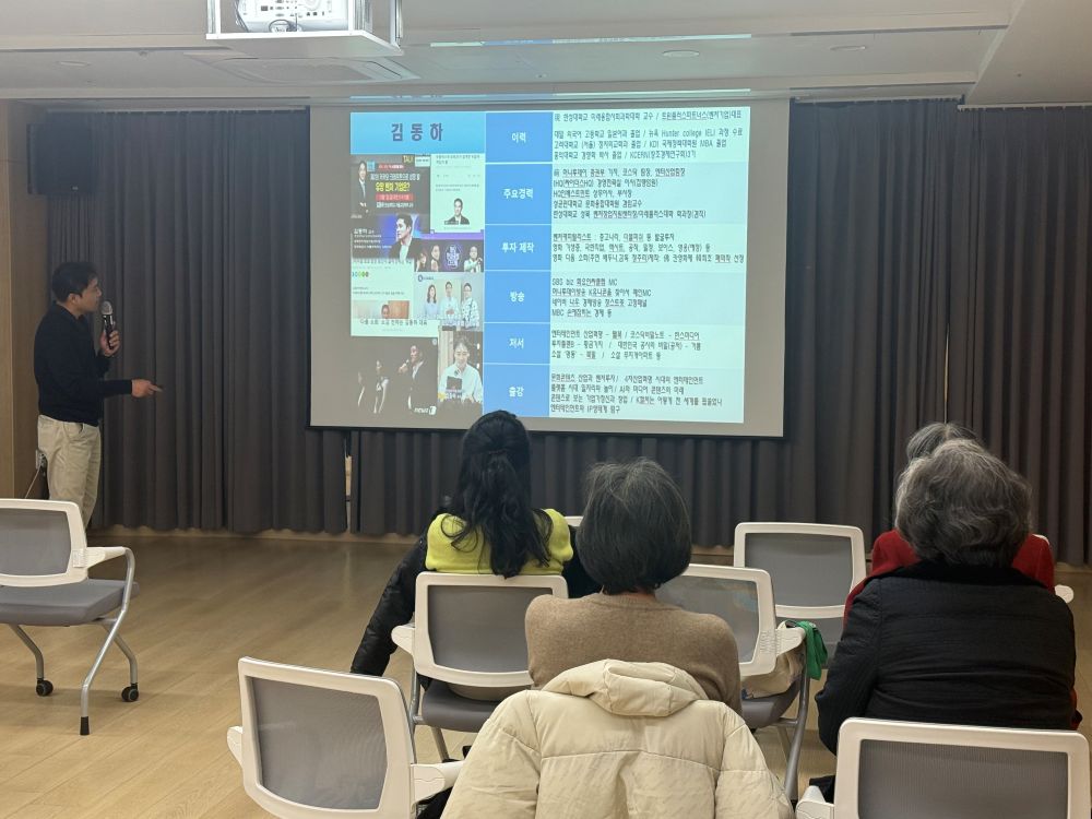 [특강] 영화 생태계, 그리고 제작과 투자 페이지 정보 작성자 최고관리자 작성일2025-12-09 17:02 조회112회 댓글0건 최고관리자 관련링크 이전글 다음글 목록 본문 ■ 일시: 2025. 12. 09.(화) 15:30 ~ 17:00 ■ 장소: 반포느티나무쉼터 어울림터 ■ 내용: 한성대학교 미래융합사회과학대학 전임교수이자 韓영화 최초 칸영화제 비평가주간 폐막작으로 선정된 <다음 소희> 제작‧배급 및 <공조2:인터내셔날>, <외계인>, <영웅>, <유령>, <베테랑>, <어쩔수가 없다> 투자‧제작에도 참여한 김동하 교수와 함께 ‘영화 생태계, 그리고 제작과 투자’라는 주제로 특강을 진행하였습니다. 이번 특강은 우리나라 영화생태계의 기본적인 구조에 대해 알아보고, 영화 콘텐츠와 IP(지식재산권)와의 관계, 그리고 제작자의 관점에서 자금조달의 유형, 인력 및 역할별 가치평가에 대해 살펴보고, 마지막으로 투자의 성공과 실패 사례분석을 통해 영화 투자의 세계를 탐험해 보는 흥미로운 시간이 되었습니다. 이번 특강에는 총 10명의 회원님이 참여하여 강의에 임해주셨습니다. 앞으로도 많은 관심과 참여 부탁드립니다. 댓글목록 등록된 댓글이 없습니다. 이전글 다음글 목록