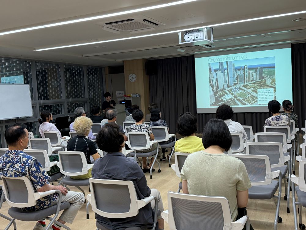 [특강]소프트파워 시대의 도시 랜드마크 역할 페이지 정보 작성자 최고관리자 작성일2025-06-25 09:18 조회373회 댓글0건 최고관리자 관련링크 이전글 다음글 목록 본문 ■ 일시: 2025. 6. 24(화) 15:30 ~ 17:00 ■ 장소: 반포느티나무쉼터 어울림터 ■ 내용: 숙명여자대학교 환경미술학과 서수경 교수와 함께 ‘소프트파워 시대의 도시 랜드마크 역할’이라는 주제로 특강을 진행하였습니다. 이번 특강은 각 랜드마크(해외 뮤지엄과 도서관을 중심으로)가 어떻게 도시의 소프트파워를 강화하고, 국가 브랜드와 국제적 영향력에 기여하는지 다양한 시각에서 살펴보며, 이를 통해 문화공간이 도시와 국가의 미래 경쟁력을 어떻게 이끄는지, 다양한 도시를 여행하며 경험하듯 강의가 진행되어 사람, 공간 그리고 미래에 대한 실제적인 이해의 폭을 넓히는데 좋은 기회가 되었습니다. 이번 특강에는 총 25명의 회원님이 참여하여 강의에 임해주셨습니다. 앞으로도 많은 관심과 참여 부탁드립니다. 댓글목록 등록된 댓글이 없습니다. 이전글 다음글 목록
