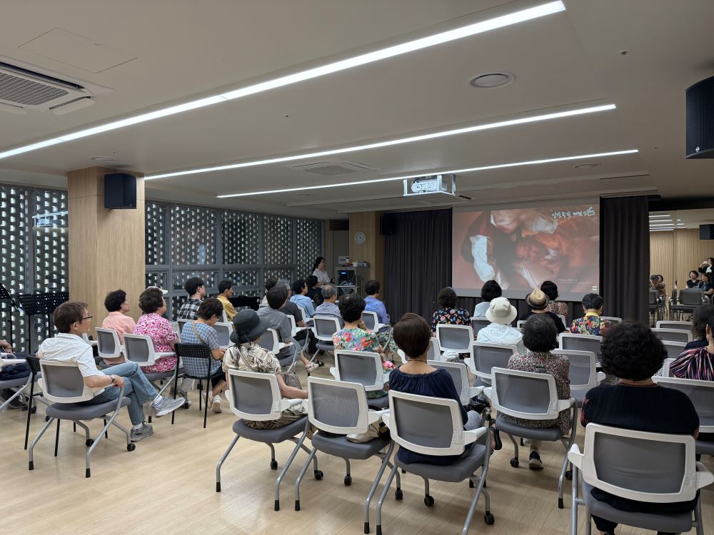 [특강] 우리가 사랑한 인간극장 페이지 정보 작성자 최고관리자 작성일2025-07-08 16:30 조회374회 댓글0건 최고관리자 관련링크 이전글 다음글 목록 본문 ■ 일시: 2025. 7. 8(화) 15:30 ~ 17:00 ■ 장소: 반포느티나무쉼터 어울림터 ■ 내용: KBS 김영선 PD와 함께 ‘우리가 사랑한 인간극장’이라는 주제로 특강을 진행하였습니다. 이번 특강에서는 김영선 PD가 선택한 인간극장의 대표적인 에피소드를 통하여 인간극장이 전하는 평범한 이들의 비범한 이야기, 다큐멘터리 제작 비하인드, 진정성 있는 삶의 메시지를 영상으로 풀어내는 방식에 대해 알아봄으로써 타인과 삶에 대한 공감의 폭을 넓히고, 자신의 삶을 성찰할 수 있는 좋은 계기가 되었고 더불어 인간극장이 사랑받는 진정한 이유를 알 수 있었습니다. 이번 특강에는 총 30명의 회원님이 참여하여 강의에 임해주셨습니다. 앞으로도 많은 관심과 참여 부탁드립니다. 댓글목록 등록된 댓글이 없습니다. 이전글 다음글 목록