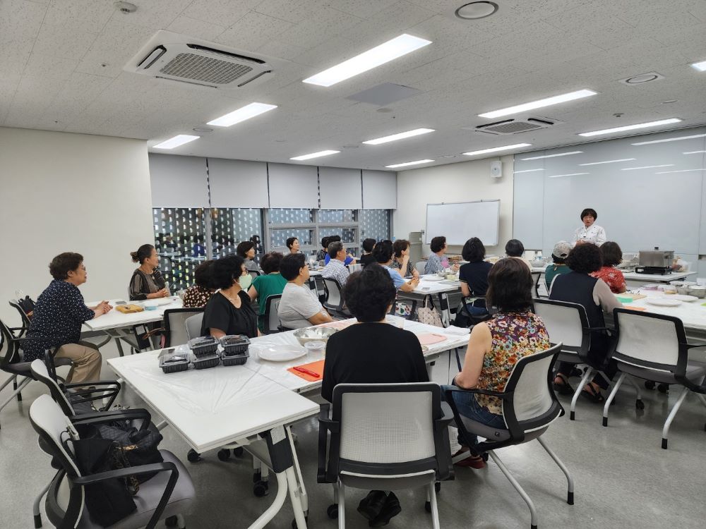 [특강] 여름철 건강을 위한 모싯잎송편, 견과류쌈장, 오미자 화채 만들기 페이지 정보 작성자 최고관리자 작성일2025-07-16 17:46 조회352회 댓글0건 최고관리자 관련링크 이전글 다음글 목록 본문 ■ 일시: 2025. 7. 15(화) 15:30 ~ 17:00 ■ 장소: 반포느티나무쉼터 배움터B ■ 내용: ‘EBS최고의 요리비결’, ‘KBS무엇이든 물어보세요’ 등 다수의 TV프로그램에 출연한 우송대학교 외식조리학부 박영란 교수와 함께 ‘여름철 건강을 위한 모싯잎 송편, 견과류 쌈장, 오미자 화채 만들기’라는 주제로 특강을 진행하였습니다. 이번 특강에서는 박영란 요리연구가의 정성과 손맛이 듬뿍 담긴 여름철 건강요리 특급레시피를 따라 직접 모싯잎 송편, 견과류 쌈장 및 오미자 화채를 만들어보고 직접 시식해보는 의미있는 시간을 가졌습니다. 이번 특강에는 총 26명의 회원님이 참여하여 강의에 임해주셨습니다. 앞으로도 많은 관심과 참여 부탁드립니다. 댓글목록 등록된 댓글이 없습니다. 이전글 다음글 목록