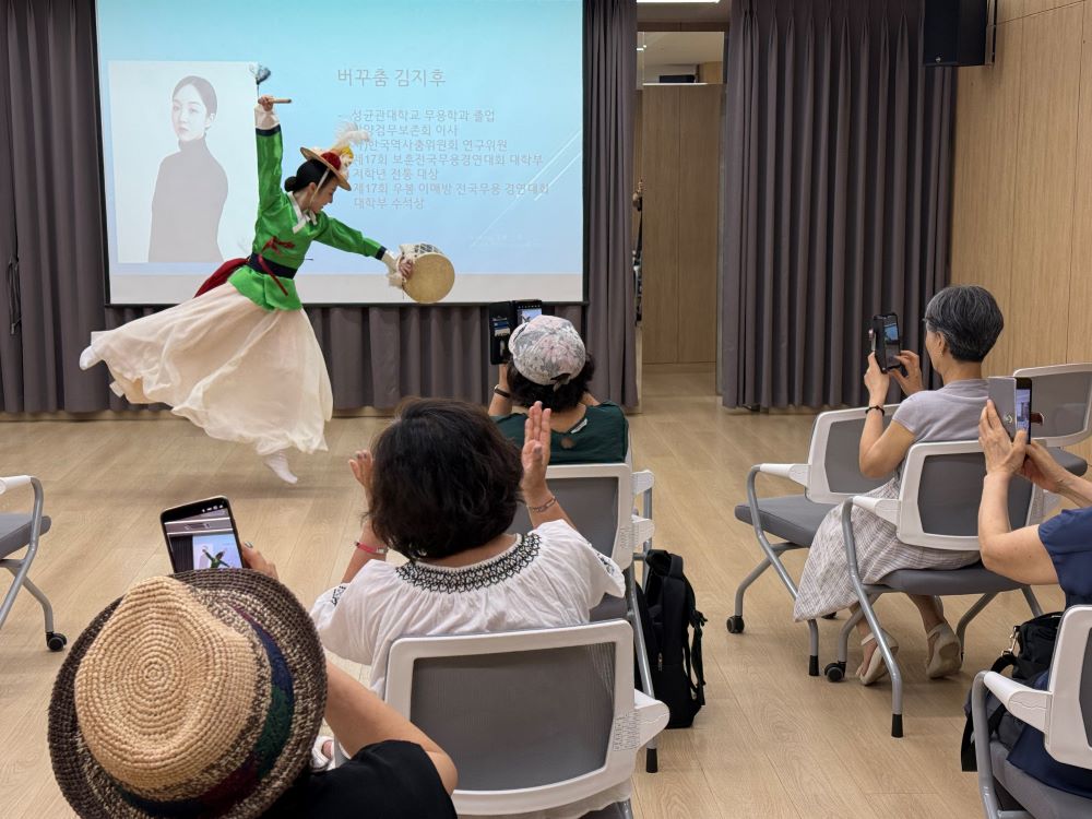 [특강] 한국춤과 함께하는 국악의 이해 2 페이지 정보 작성자 최고관리자 작성일2025-07-30 18:50 조회317회 댓글0건 최고관리자 관련링크 이전글 다음글 목록 본문 ■ 일시: 2025. 7. 29(화) 15:30 ~ 17:00 ■ 장소: 반포느티나무쉼터 어울림터 ■ 내용: 국가무형유산 판소리 고법 전수자이며 국가무형유산 봉산탈춤 이수자인 한배아트컬쳐스 최영진 대표와 함께 ‘한국춤과 함께하는 국악의 이해 2’라는 주제로 특강을 진행하였습니다. 이번 특강에서는 한국춤의 어원, 특징, 종류에 대해 알아보고, 선사시대부터 현대에 이르기까지 변화되는 춤의 역사와 각 시대를 대표하는 춤에 대해 살펴보았습니다. 더불어 김지후 무용가와 함께 한국춤의 기본 춤동작을 함께 따라해보며 익혀보는 시간을 가졌으며, 신라 전기의 춤인 검무와 근대 사회에서 형성된 민속춤인 버꾸춤의 공연을 통해 장단가락과 박자에 맞추어 온몸으로 퍼지는 춤사위를 한껏 느껴보는 즐거운 시간이 되었습니다. 이번 특강에는 총 15명의 회원님이 참여하여 강의에 임해주셨습니다. 앞으로도 많은 관심과 참여 부탁드립니다. 댓글목록 등록된 댓글이 없습니다. 이전글 다음글 목록