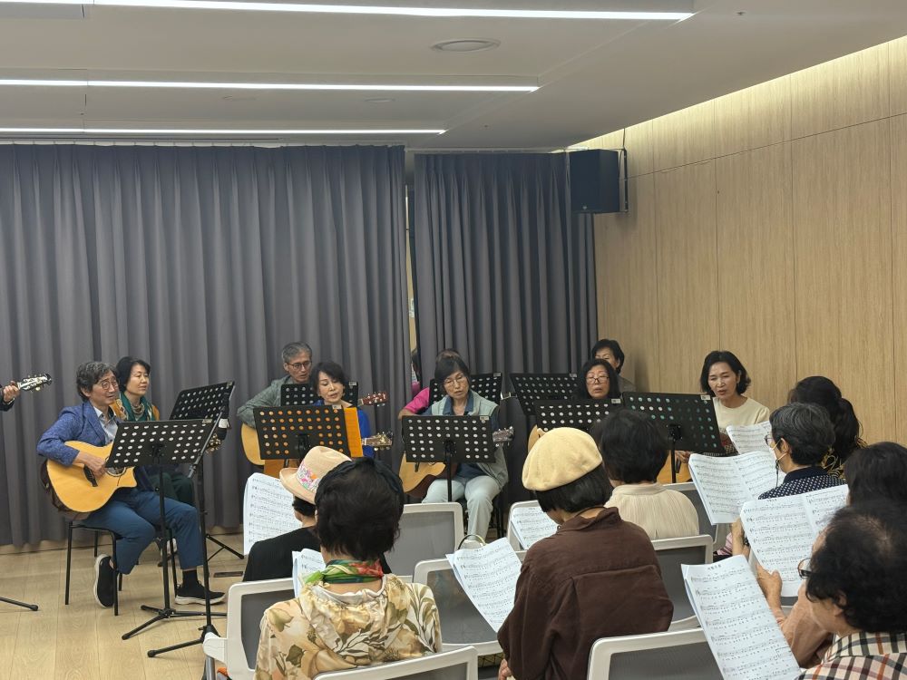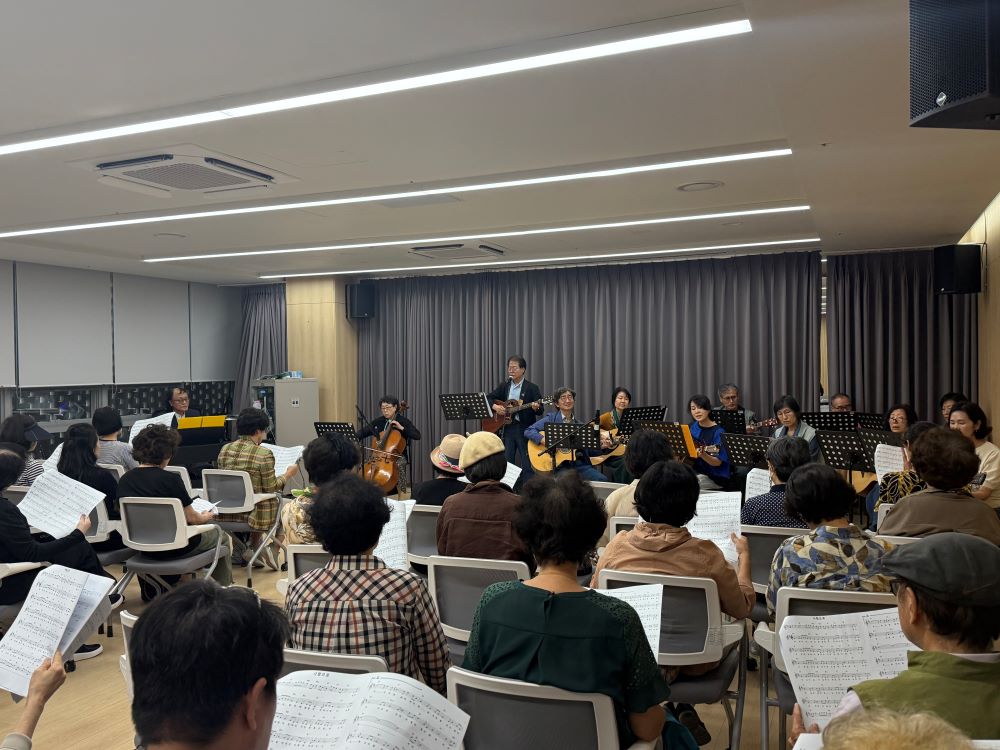 [특강] 추억의 팝송 부르기 페이지 정보 작성자 최고관리자 작성일2025-10-02 15:17 조회215회 댓글0건 최고관리자 관련링크 이전글 다음글 목록 본문 ■ 일시: 2025. 9. 30.(화) 15:30 ~ 17:00 ■ 장소: 반포느티나무쉼터 어울림터 ■ 내용: 前명지전문대학교 실용음악과 겸임교수이자 세시봉 악단장으로 활약했던 변성용 선생님, 前MBC 악단원 첼리스트 권수미 선생님, 서라벌 예대 “Jokers” 리드보컬 이수용 선생님과 함께 ‘추억의 팝송부르기’라는 주제로 특강을 진행하였습니다. 이번 특강은 피아노, 첼로 반주와 함께 통기타노래교실반과 해바라기 <사랑으로>의 멋진 합주를 시작으로 <Moon River>, <My way>, <Green Green Glass of Home>, <Yesterday>의 유명 올드팝과 <가을 편지>, <안동역에서> 등 추억의 우리가요를 소환해 불러보는 흥겹고 즐거운 시간이 되었습니다. 이번 특강에는 총 40명의 회원님이 참여하여 강의에 임해주셨습니다. 앞으로도 많은 관심과 참여 부탁드립니다. 댓글목록 등록된 댓글이 없습니다. 이전글 다음글 목록