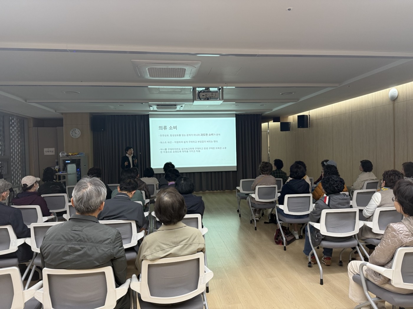 [특강]시니어와 패션 페이지 정보 작성자 최고관리자 작성일2025-04-03 08:51 조회272회 댓글0건 최고관리자 관련링크 이전글 다음글 목록 본문 ■ 일시: 2025. 4. 1(화) 15:30 ~ 16:30■ 장소: 반포느티나무쉼터 어울림터■ 내용: 한국패션문화협회 이사 및 작가인 간문자 교수와 함께 ‘시니어와 패션’이라는 주제로 특강을 진행하였습니다. 이번 특강에서는 시니어로서 패션에 대한 이해와 접근방식, 패션라이프와 환경문제로 환경·비건·지속가능한 삶에 대한 탐구와 더불어 의복구매, 착장, 관리에 이르기까지 작은 관심과 변화의 중요성에 대해 알아보았습니다. 또한 패션과 라이프스타일, 아트를 결합한 창의적이고 예술적인 작품을 자료를 통해 감상함으로써 새로운 시각을 경험할 수 있었습니다. 이번 특강에는 총 35명의 회원님이 참여하여 강의에 임해주셨습니다. 앞으로도 많은 관심과 참여 부탁드립니다. 댓글목록 등록된 댓글이 없습니다. 이전글 다음글 목록