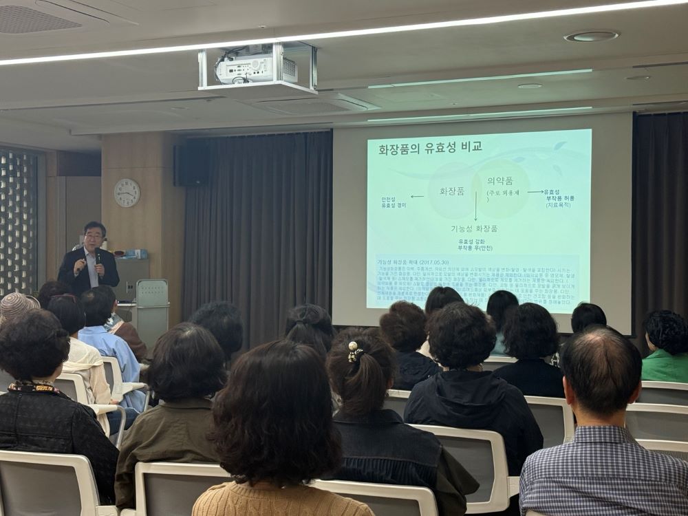 [특강]화장품 바르게 사용하기 페이지 정보 작성자 최고관리자 작성일2025-05-14 09:46 조회406회 댓글0건 최고관리자 관련링크 이전글 다음글 목록 본문 ■ 일시: 2025. 5. 13(화) 15:30 ~ 17:00■ 장소: 반포느티나무쉼터 어울림터■ 내용: 성신여대 뷰티융합대학원장 김주덕 교수와 함께 ‘화장품 바르게 사용하기’라는 주제로 특강을 진행하였습니다. 이번 특강에서는 우리 피부에 직접적인 접촉으로 영향을 미치는 화장품과 염모제, 자외선 차단제에 대해 자세히 알아보는 시간을 가졌습니다. 화장품의 정의와 분류, 필요성, 보관 및 사용방법, 나에게 맞는 화장품 선택방법, 염모제의 분류와 특징, 모발의 구조와 성분, 염모제의 안전한 사용방법, 자외선이 피부조직에 미치는 영향, 자외선차단제의 성분과 종류 및 올바른 사용방법, 동안피부를 위한 생활습관팁을 배워보았습니다. 이번 특강에는 총 40명의 회원님이 참여하여 강의에 임해주셨습니다. 앞으로도 많은 관심과 참여 부탁드립니다. 댓글목록 등록된 댓글이 없습니다. 이전글 다음글 목록